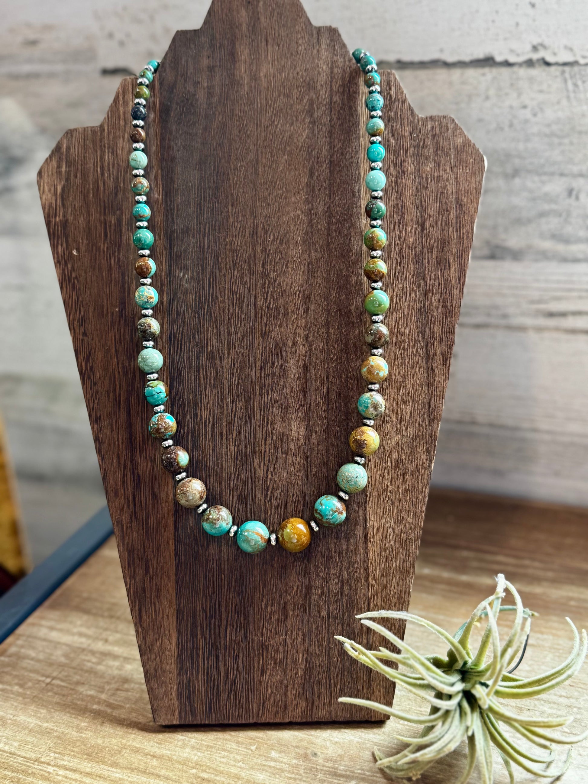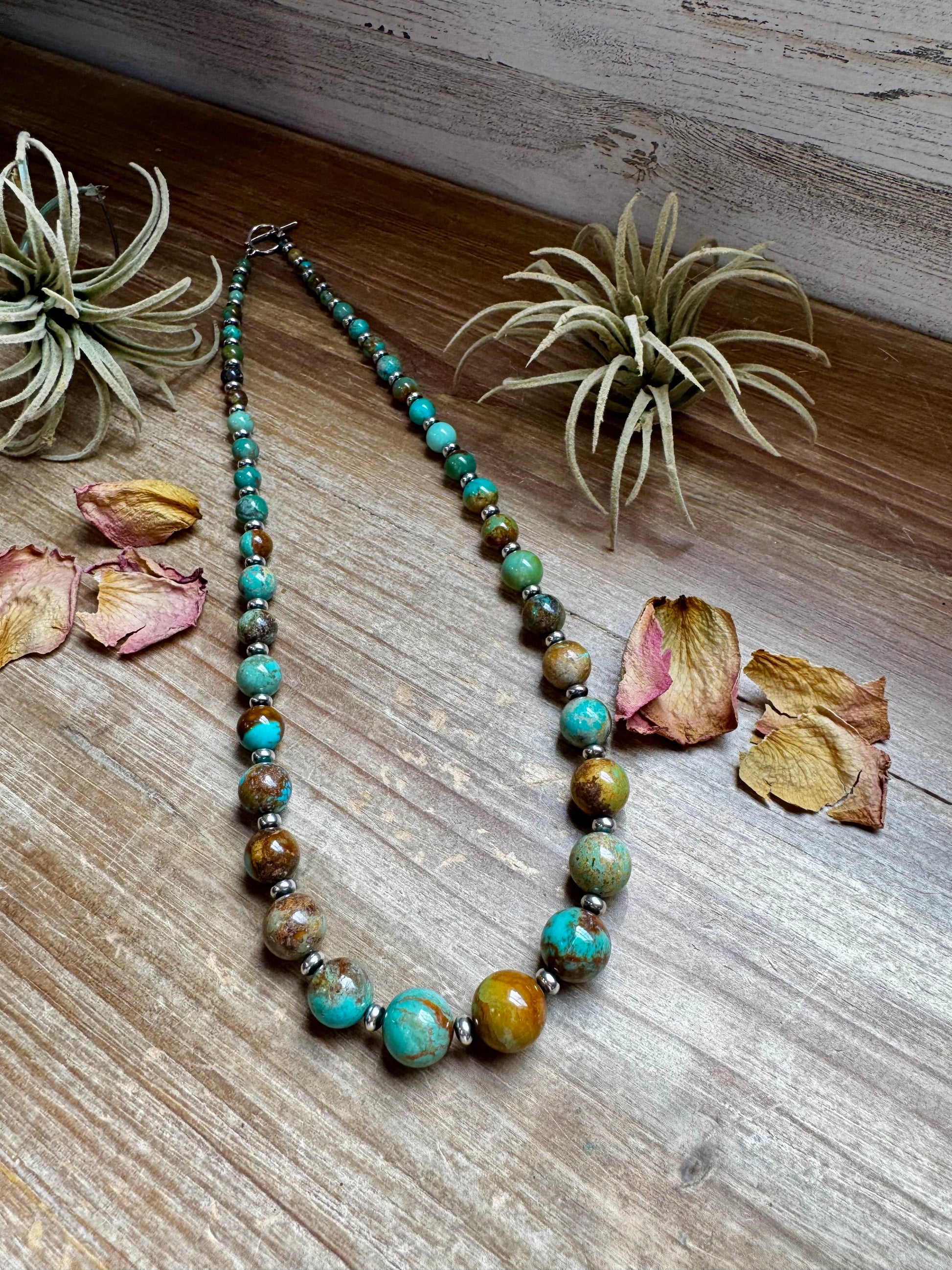 This bold 24-inch necklace features a stunning lineup of graduated round turquoise beads—each one with its own wild, unique color and matrix. No filters needed... the color on this necklace is insane in real life. ONE FOR THE PRICE