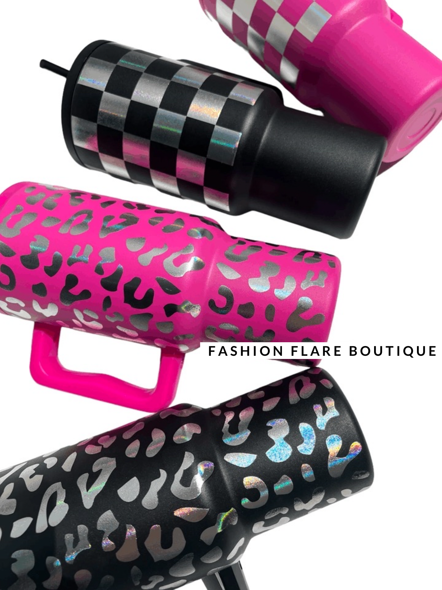 30 Oz Holographic Tumbler w/ Handle - Black Leopard