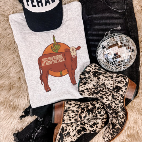 Thanks to our high-quality sublimation process, each design is permanently bonded to the fabric—no cracking, peeling, or fading, even after multiple washes. Whether you’re dressing it up with turquoise and tooled leather or keeping it casual with denim and boots, these tees are made to fit effortlessly into your western lifestyle.