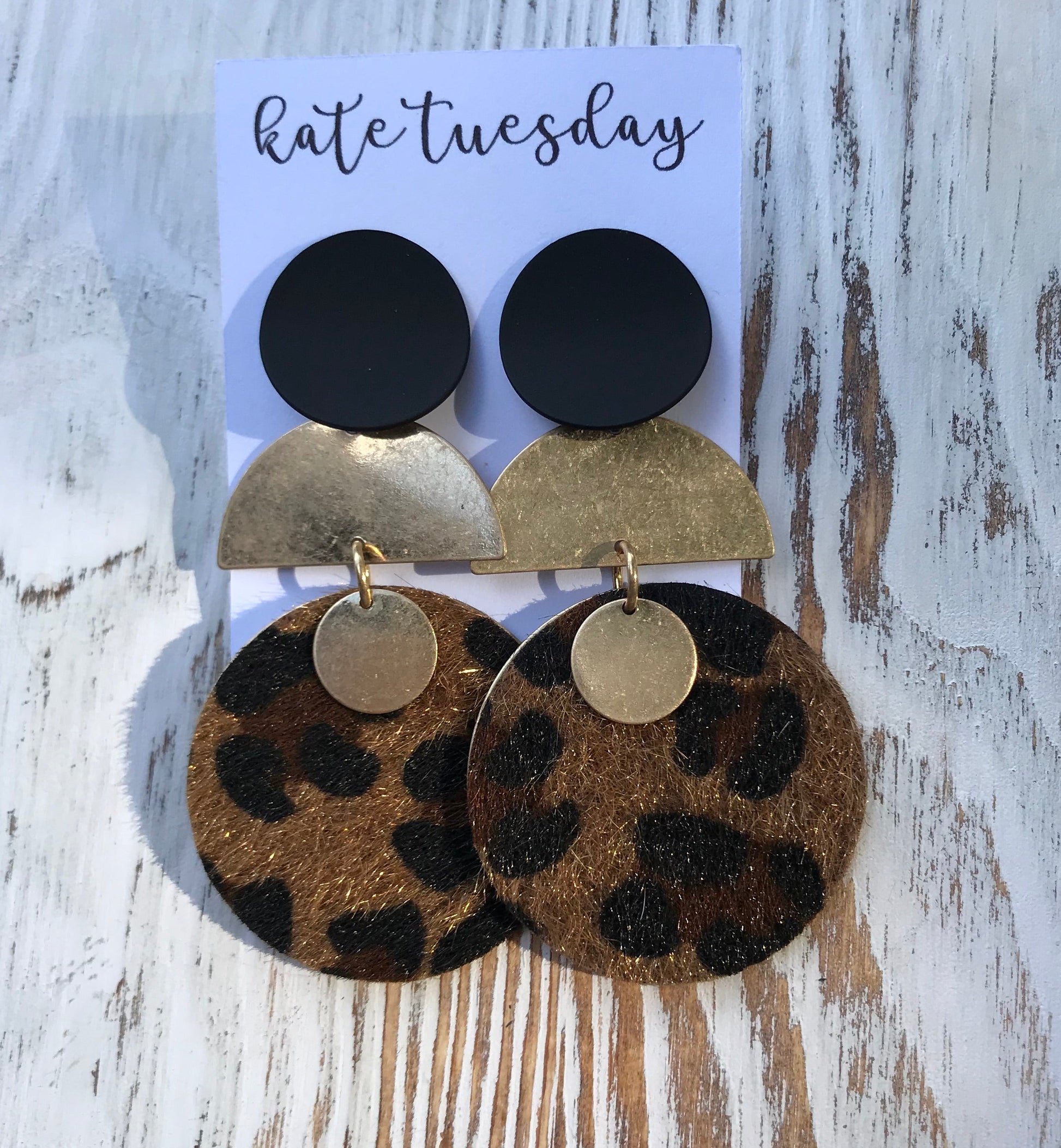 Leopard Cheetah 3 Layer Gold Metal Earrings