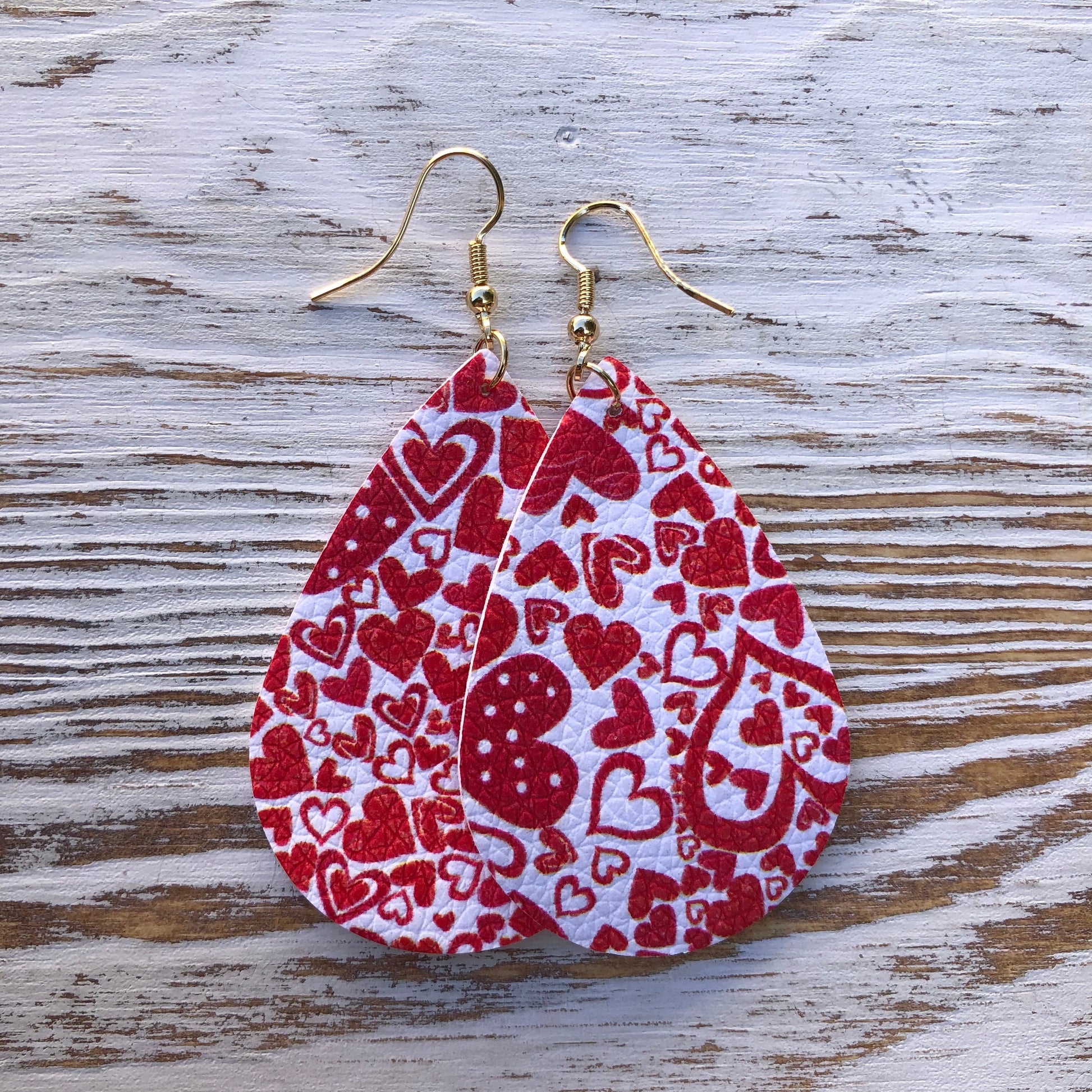 Red and White Multi Hearts Leather Earrings