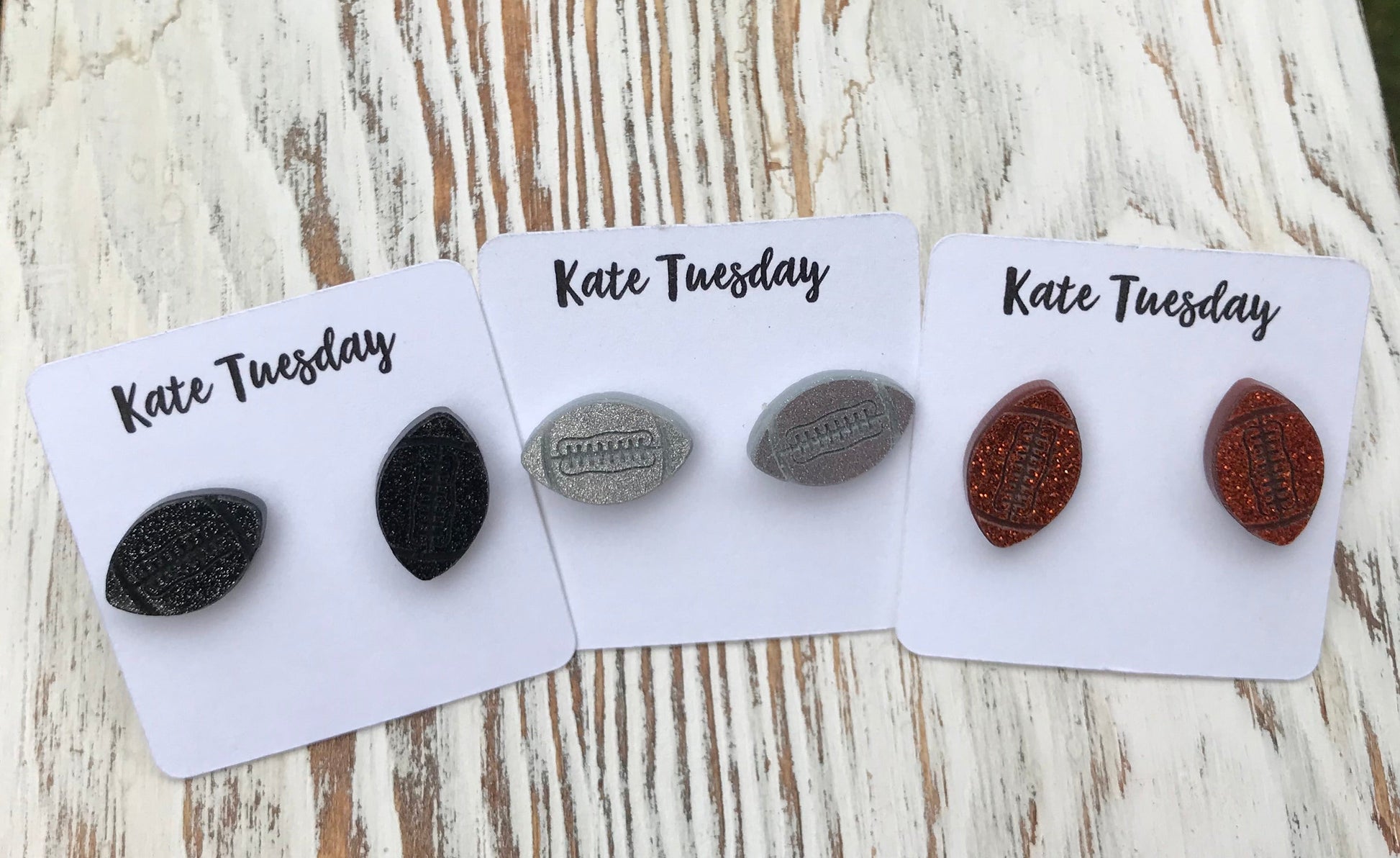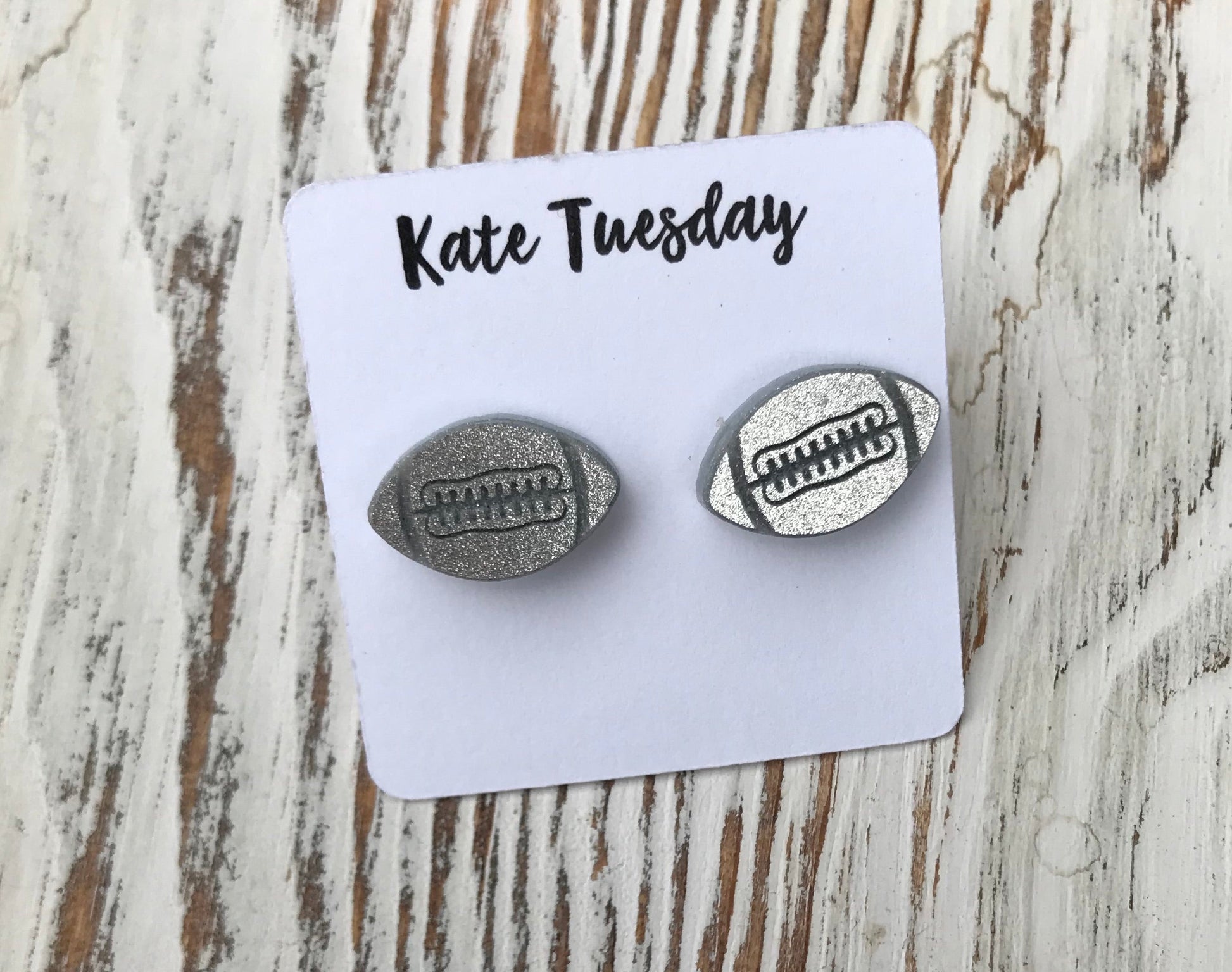 Football Engraved Football Sparkly Sports Stud Acrylic Earrings Black, Copper, Silver