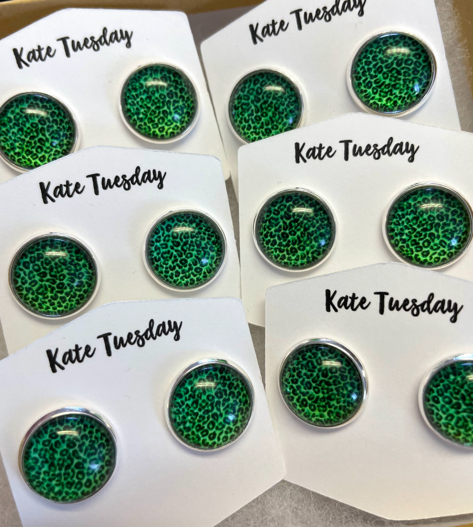 Green Cheetah Leopard 12mm Earrings