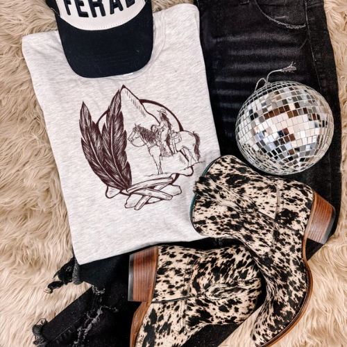 Trendy, comfortable, and one-of-a-kind—this isn’t just another graphic tee; it’s a Checkered Spur exclusive.