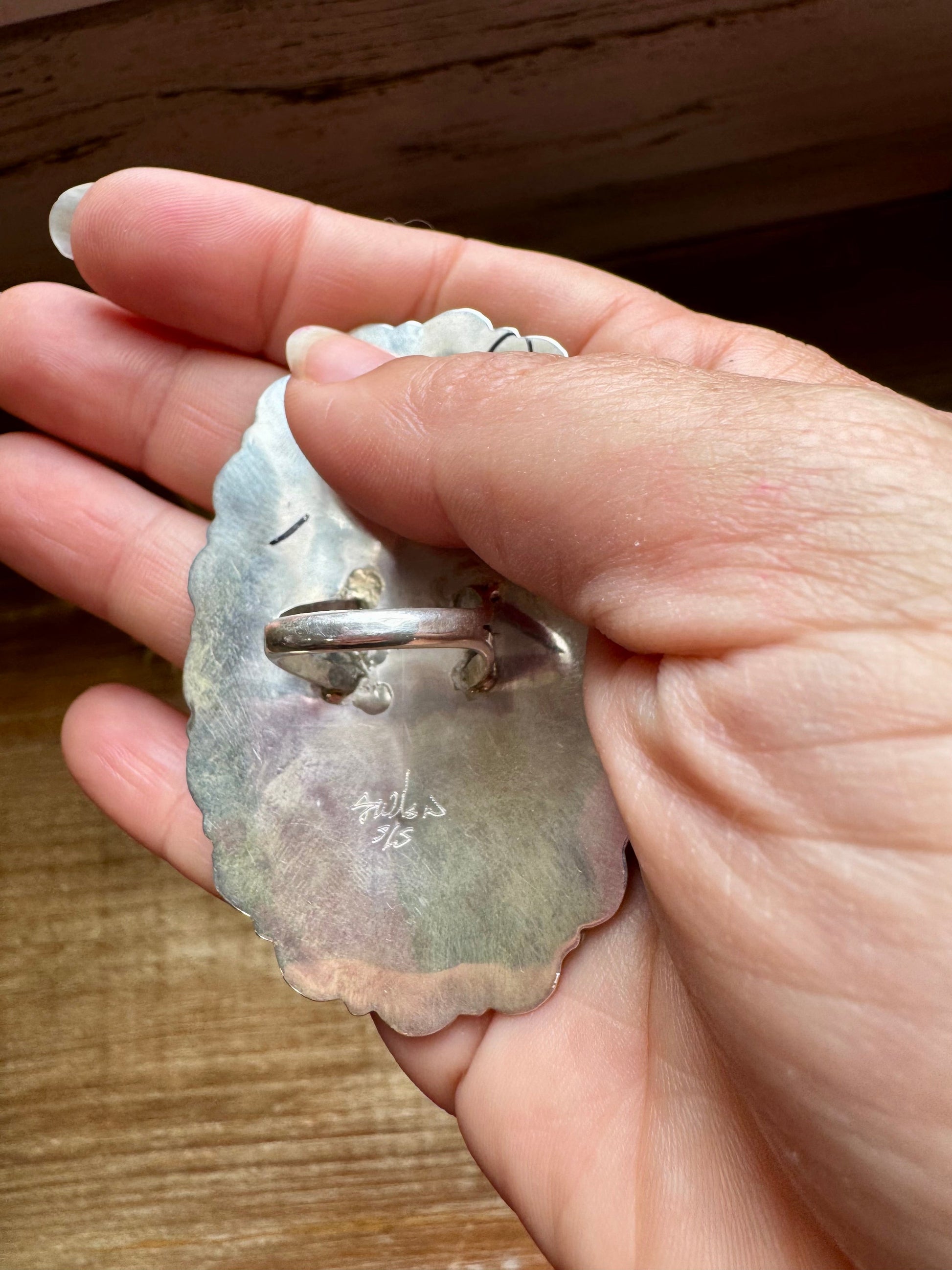 An unforgettable statement ring, handcrafted by Navajo artist Jaz Wilson. This bold Kingman turquoise cluster ring features a radiant spread of stones set in sterling silver, showcasing stunning craftsmanship and deep desert blues. The elongated design makes a powerful impact.