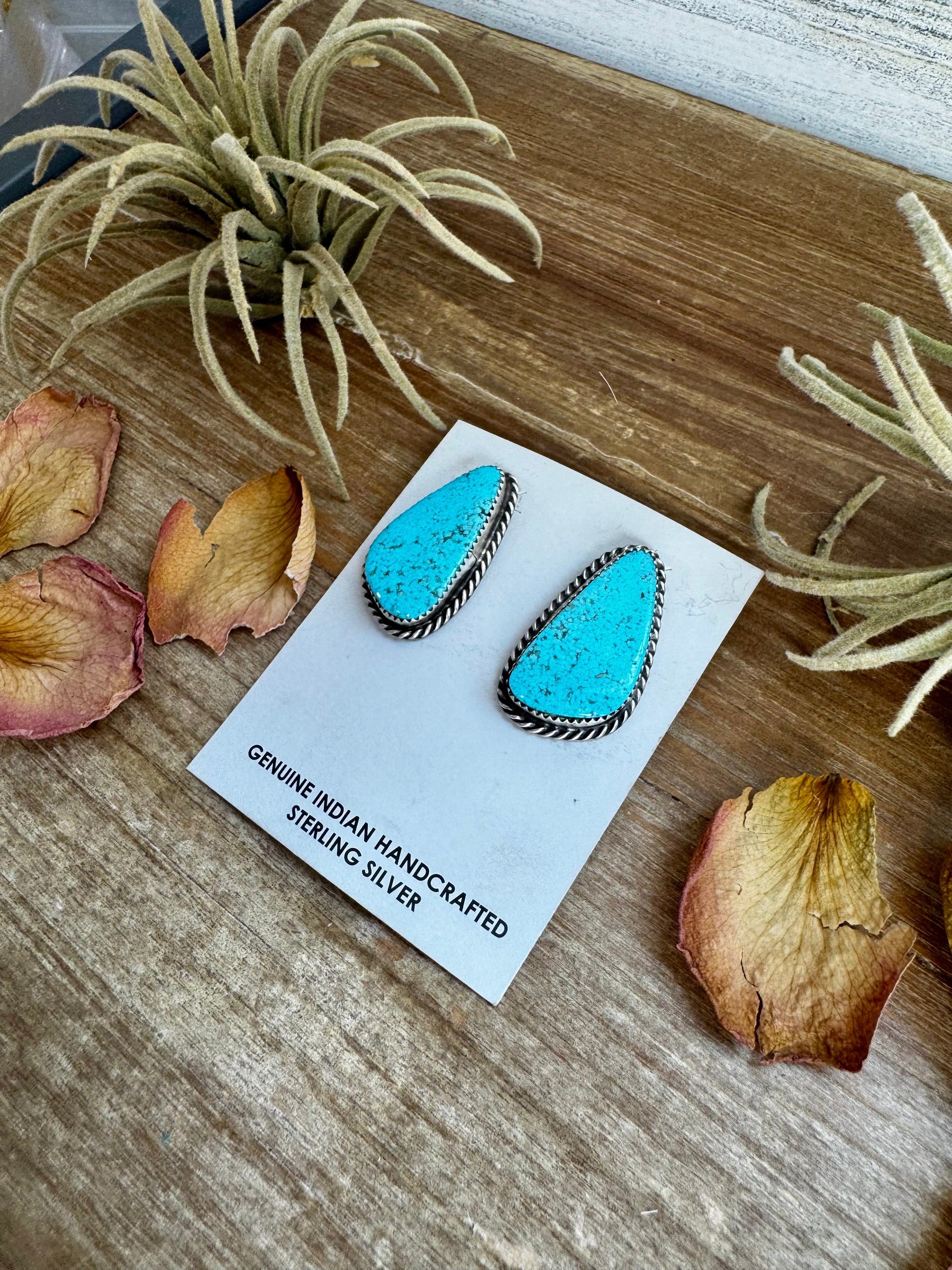 Kingman Turquoise Earrings – Sterling Silver – Handmade by Donovan Nez, Navajo Artist