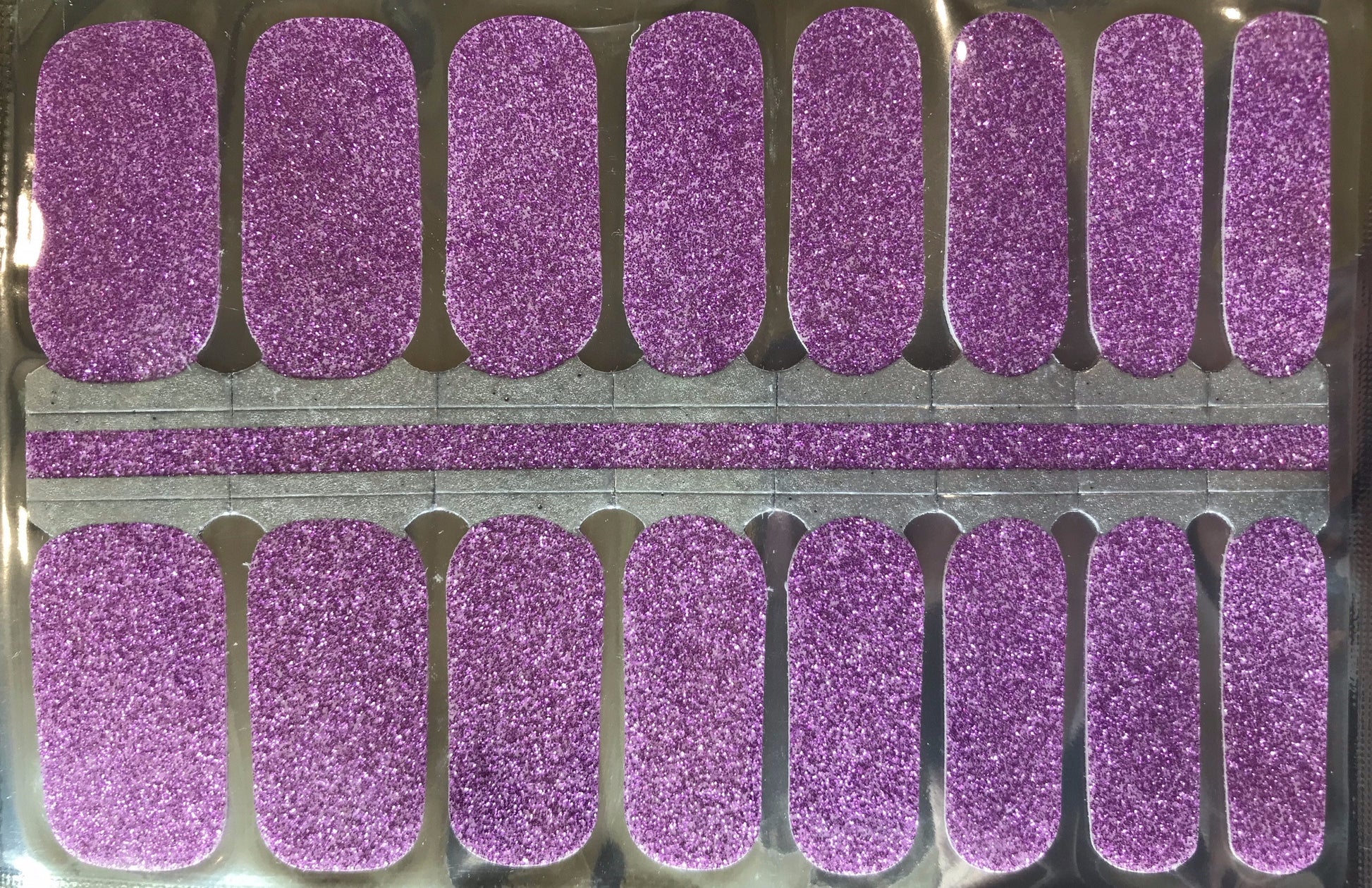 With a beautiful shade of purple, reminiscent of beautiful lilacs and lavender, these solid purple glitter nail polish strips are as beautiful as the signs of spring.