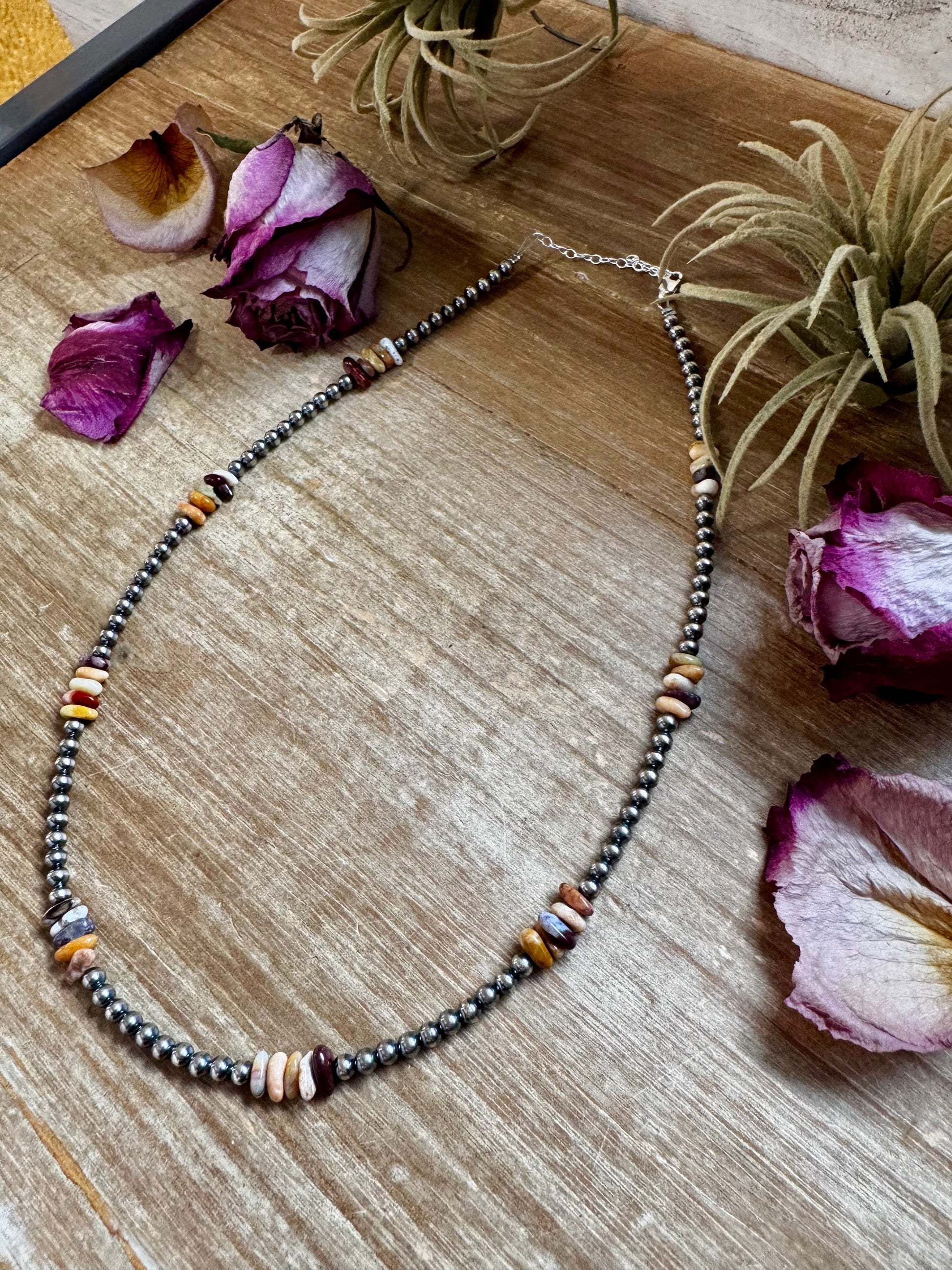 Nevada Opal Nugget Necklace – Sterling Silver Pearls – Handmade by The Bijoux FAB – 19"