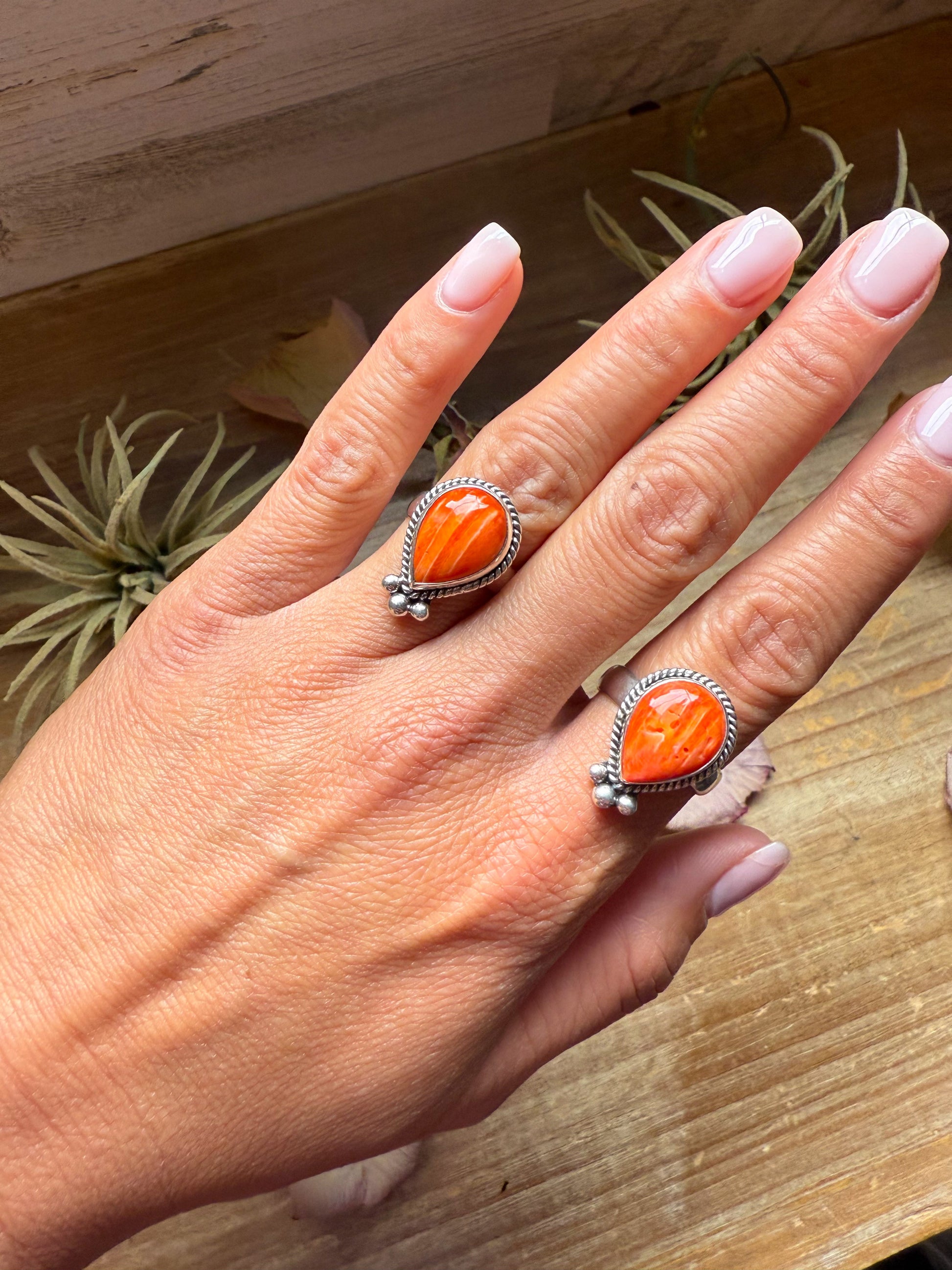 Orange Spiny Oyster Sterling Silver Ring – Size 7 or 10