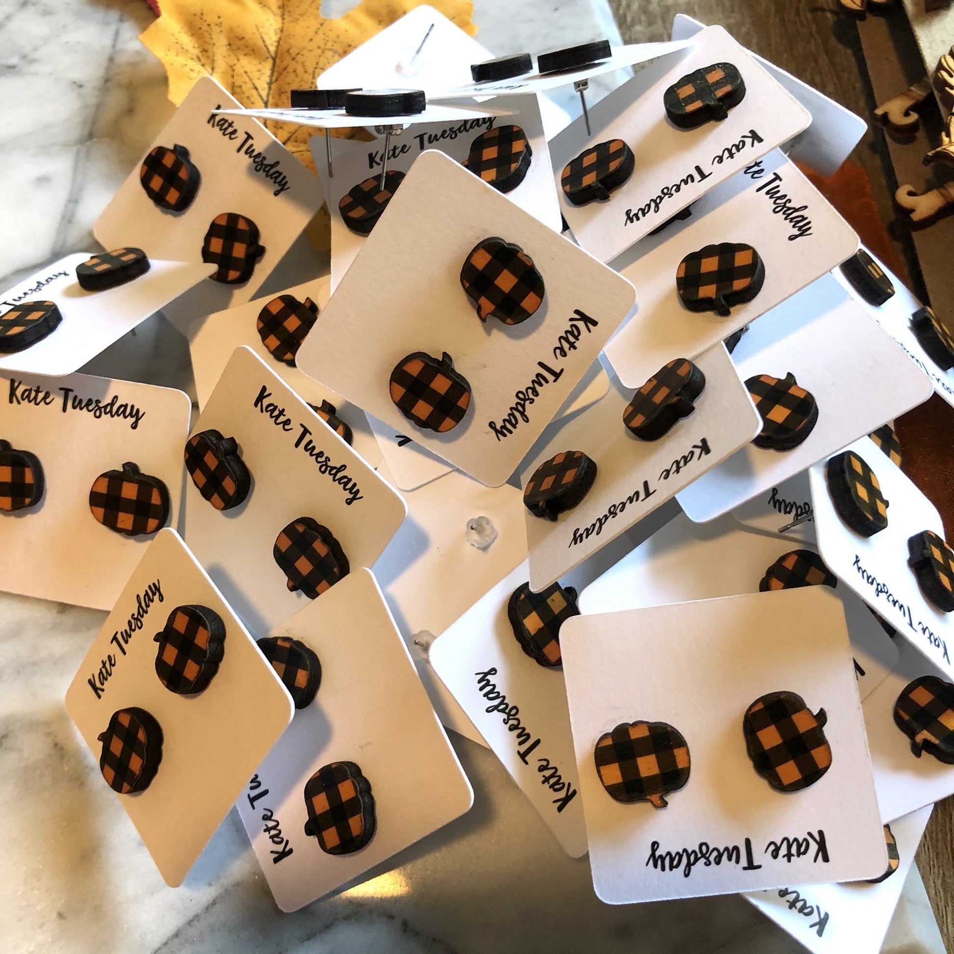 Plaid Pumpkin Fall Earrings