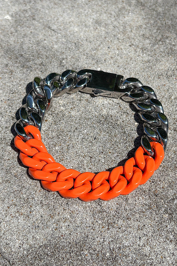 Add a pop of color and fun to your outfit with our Orange and Silver Link Bracelet. The chunky links are a trendy touch, making them the perfect accessory for game day at the University of Tennessee (and beyond)! Go Vols!