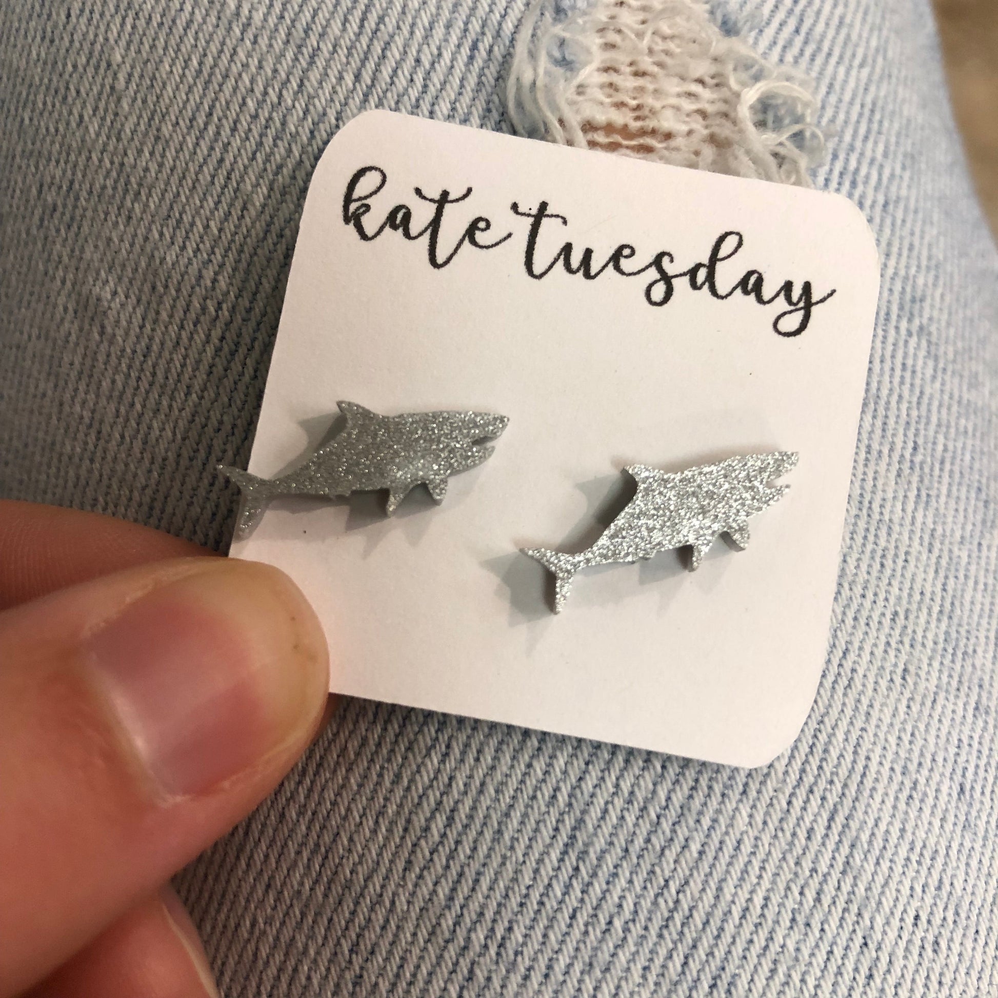 Silver Baby Shark Glittery Acrylic Earrings