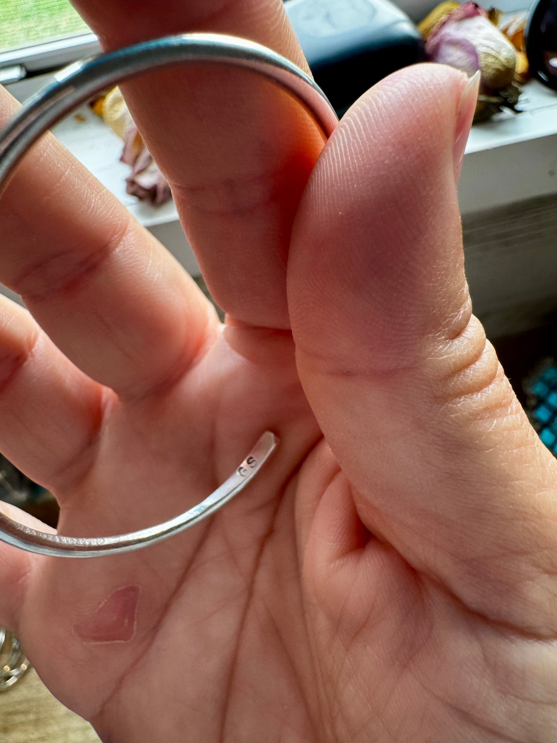 Handmade in the USA by Native silversmith GS, these sterling silver cuffs are available with your choice of pink, blue, or white opal. Each opal shows its own shimmering play of color, making every bracelet slightly unique. Lightweight and comfortable, these small cuffs are perfect for everyday wear or stacking with other silver and turquoise jewelry. Stamped for authenticity.