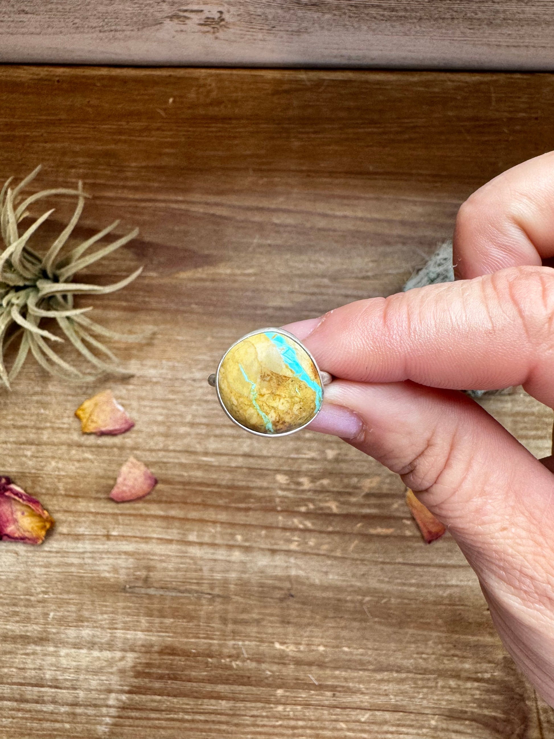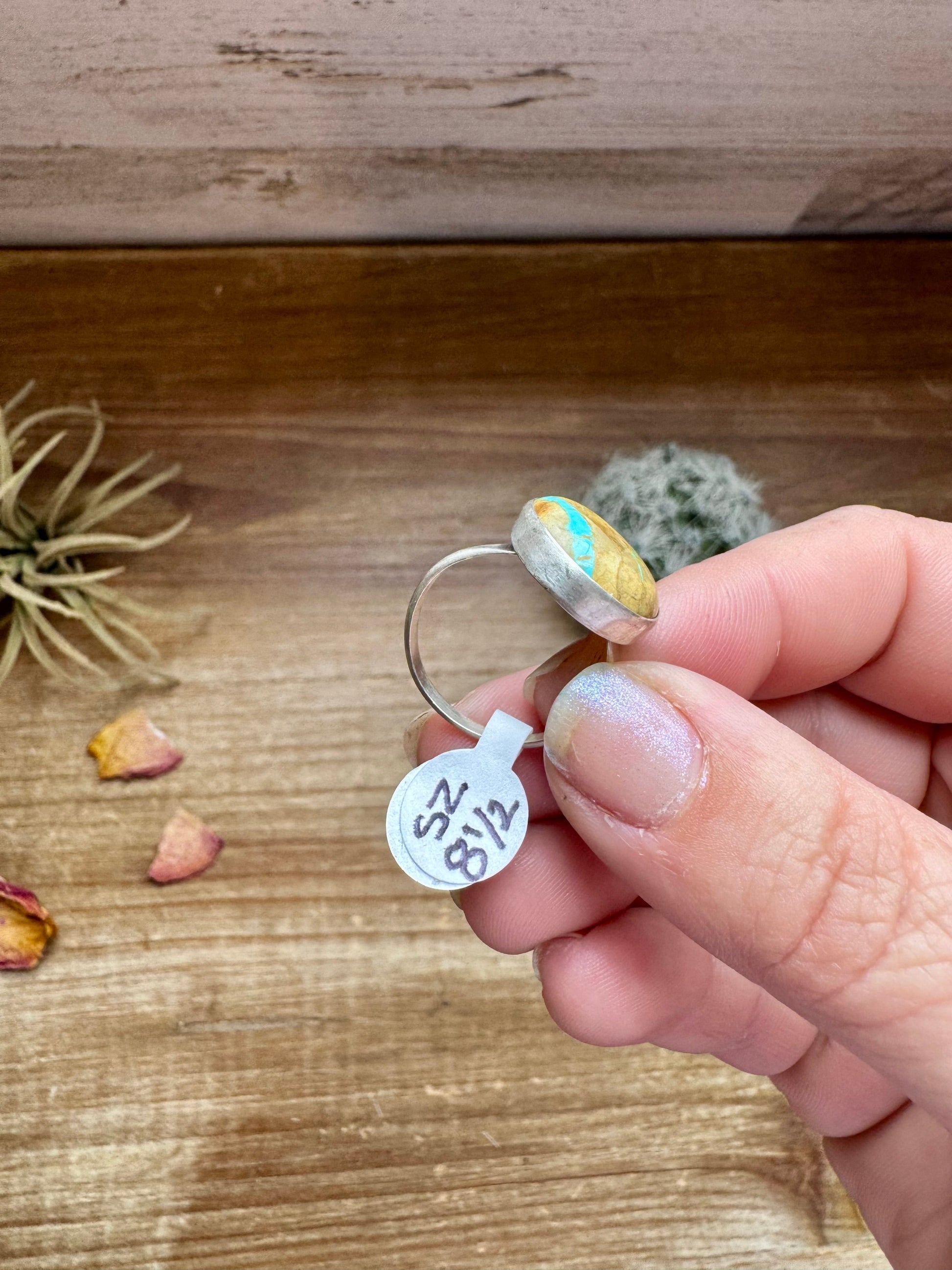 Small Ring - Size 8 1/2 - Ribbon Turquoise & Sterling Silver