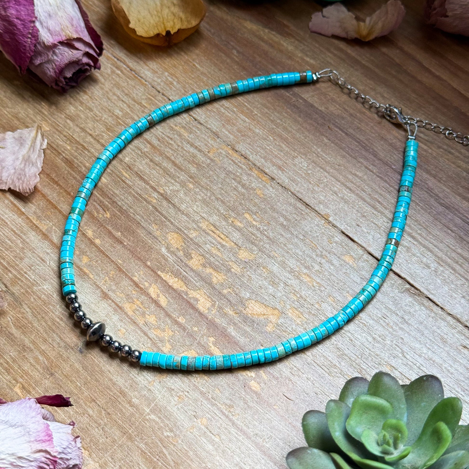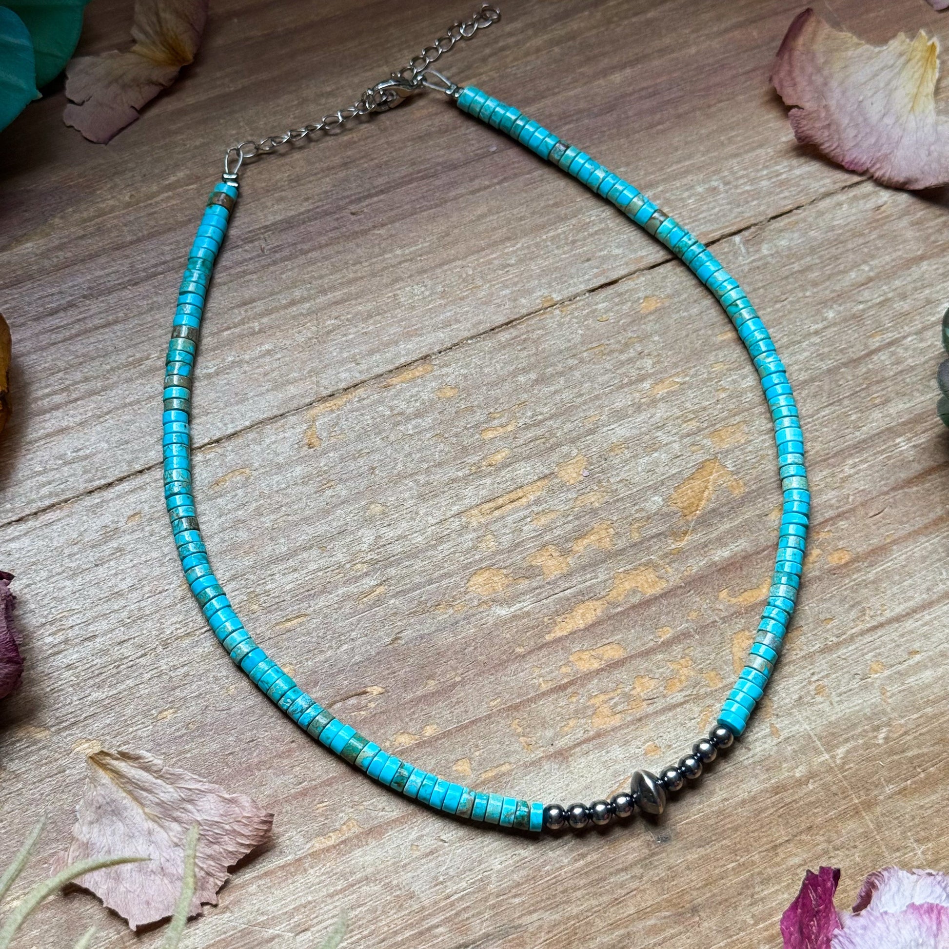 - 4mm Variscite turquoise heishi beads – a unique western touch