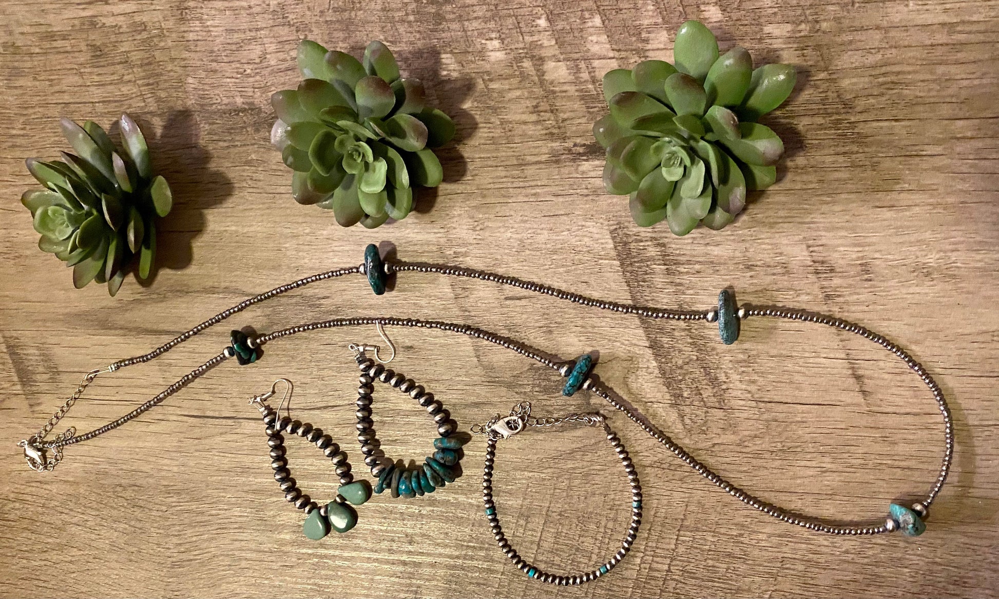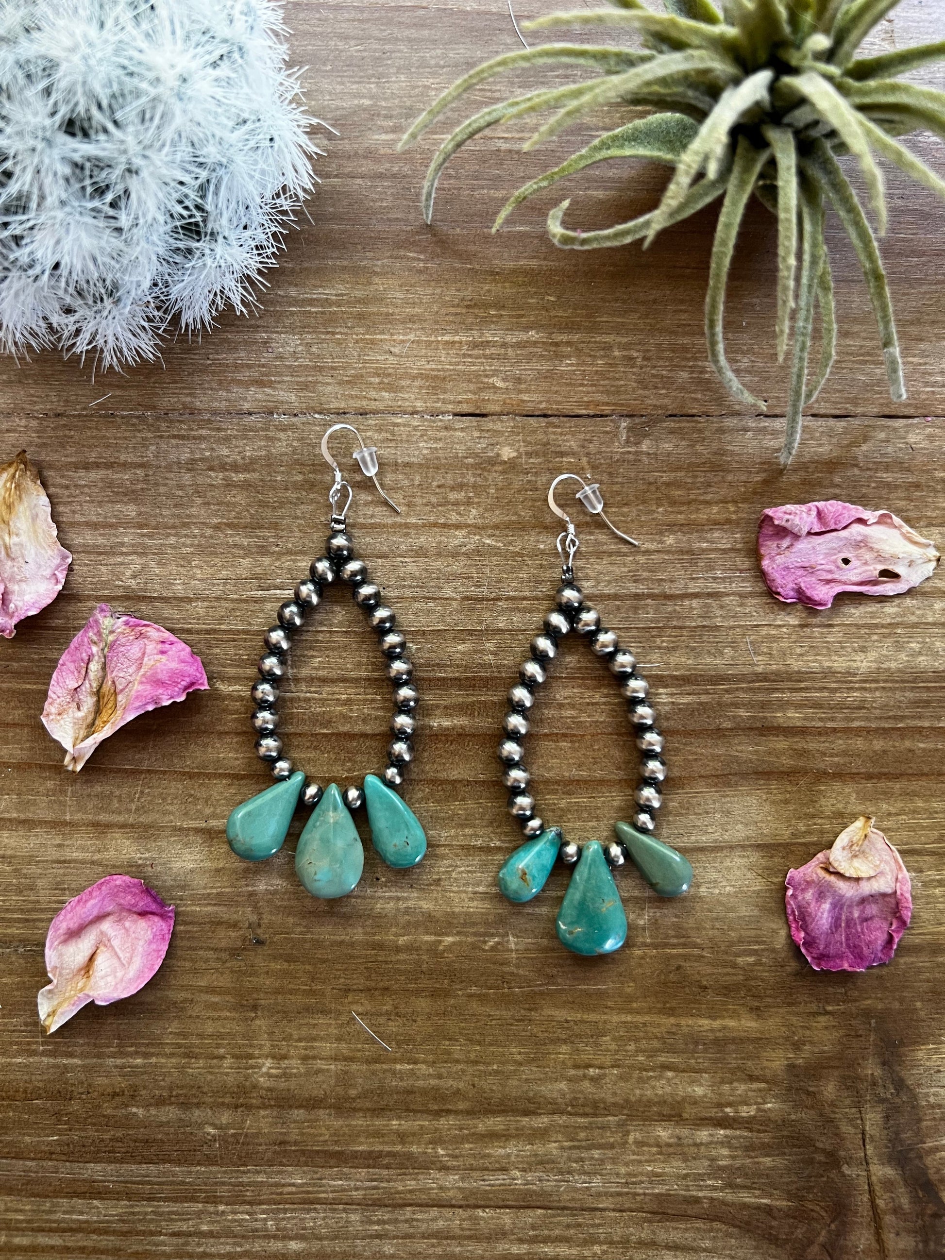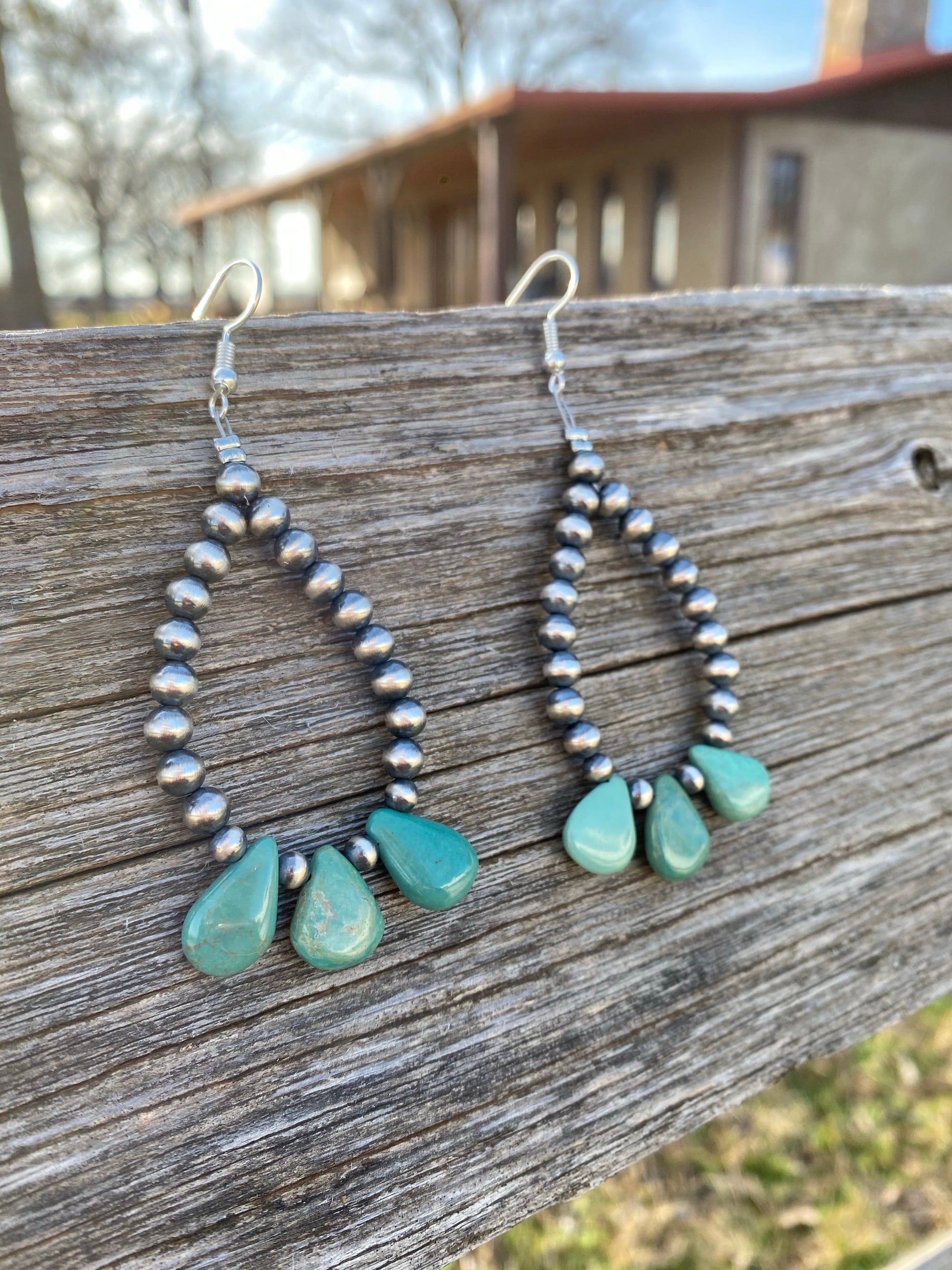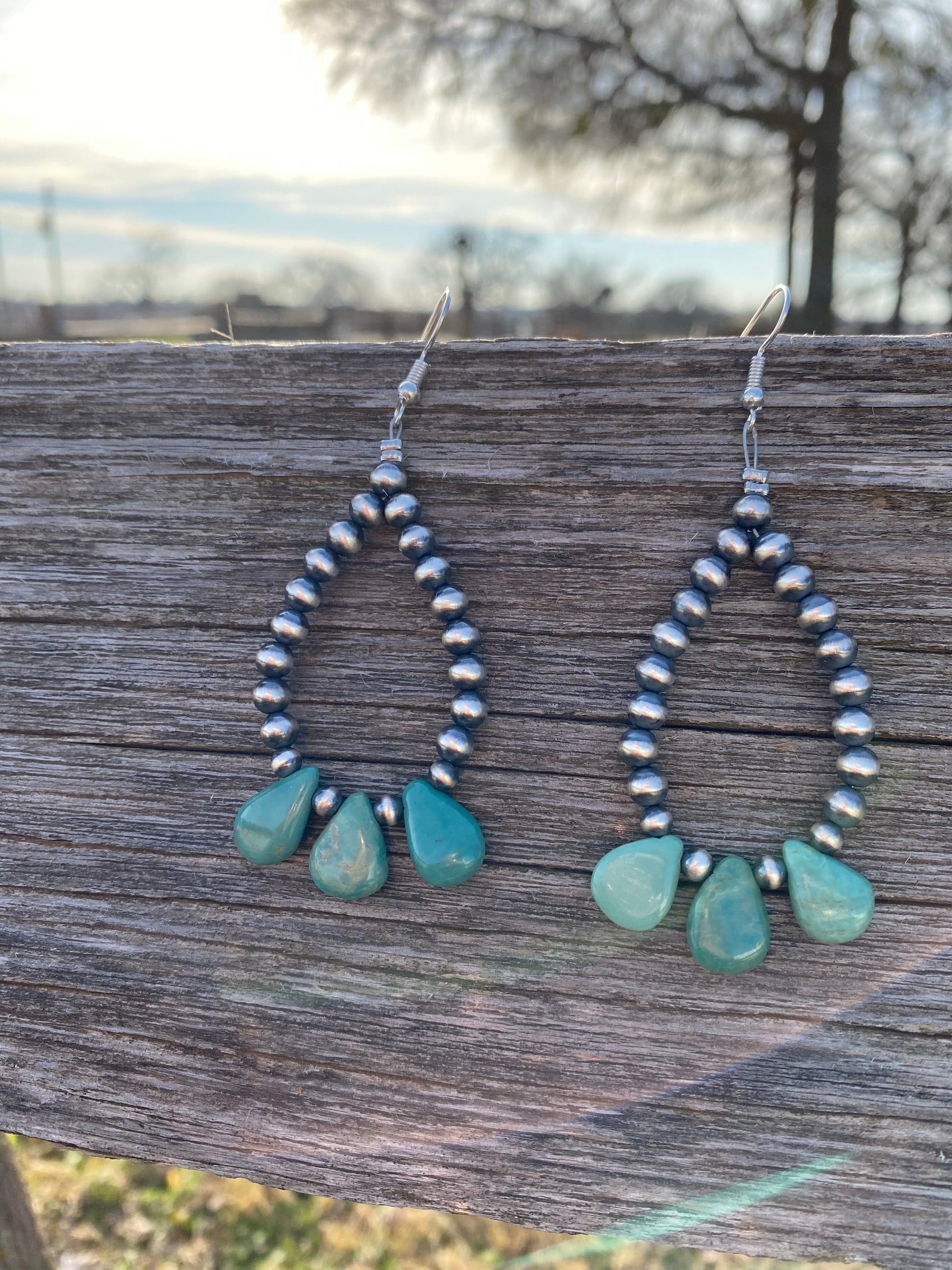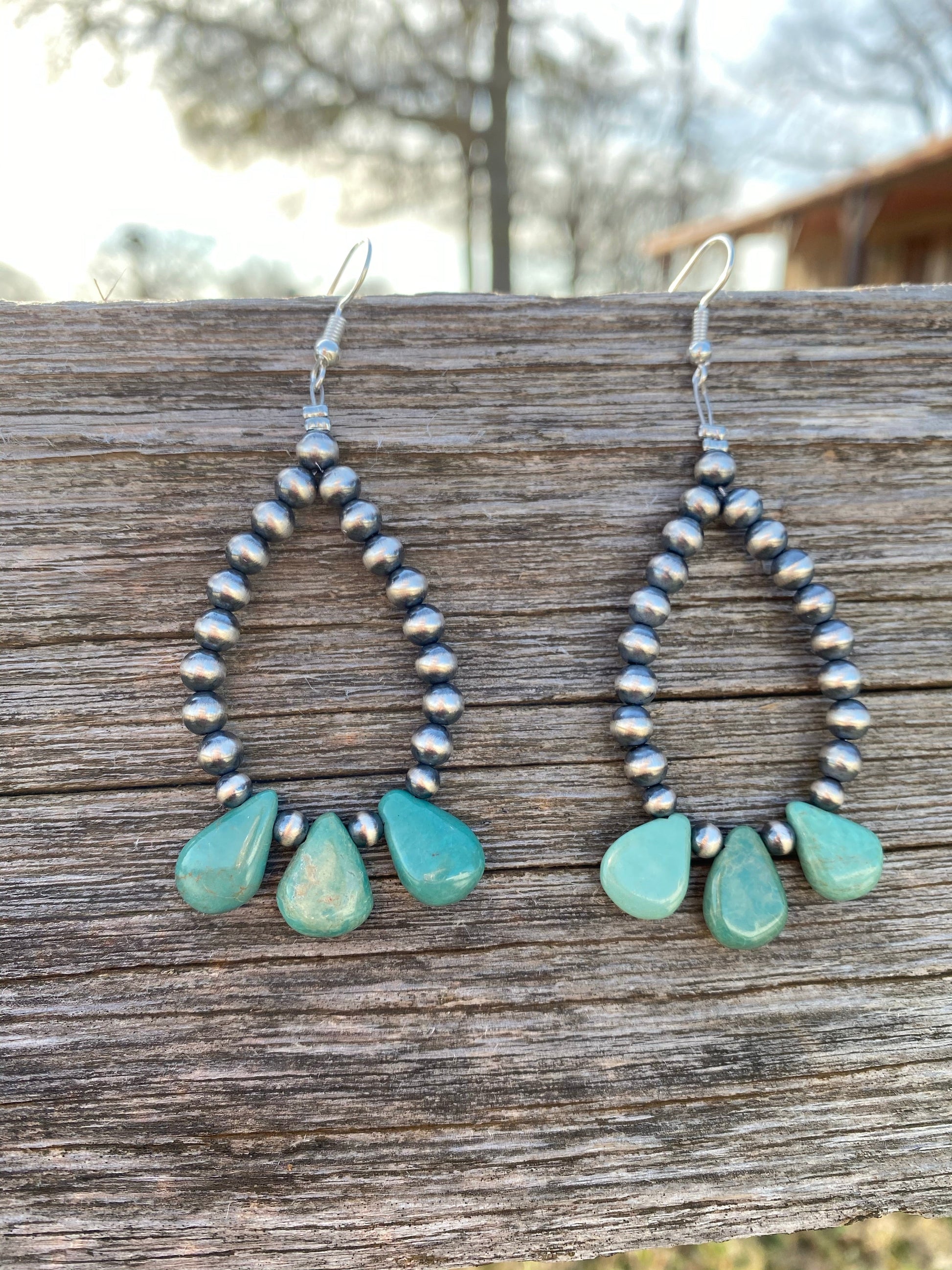 Teardrop turquoise and Sterling Silvers Pearls earrings