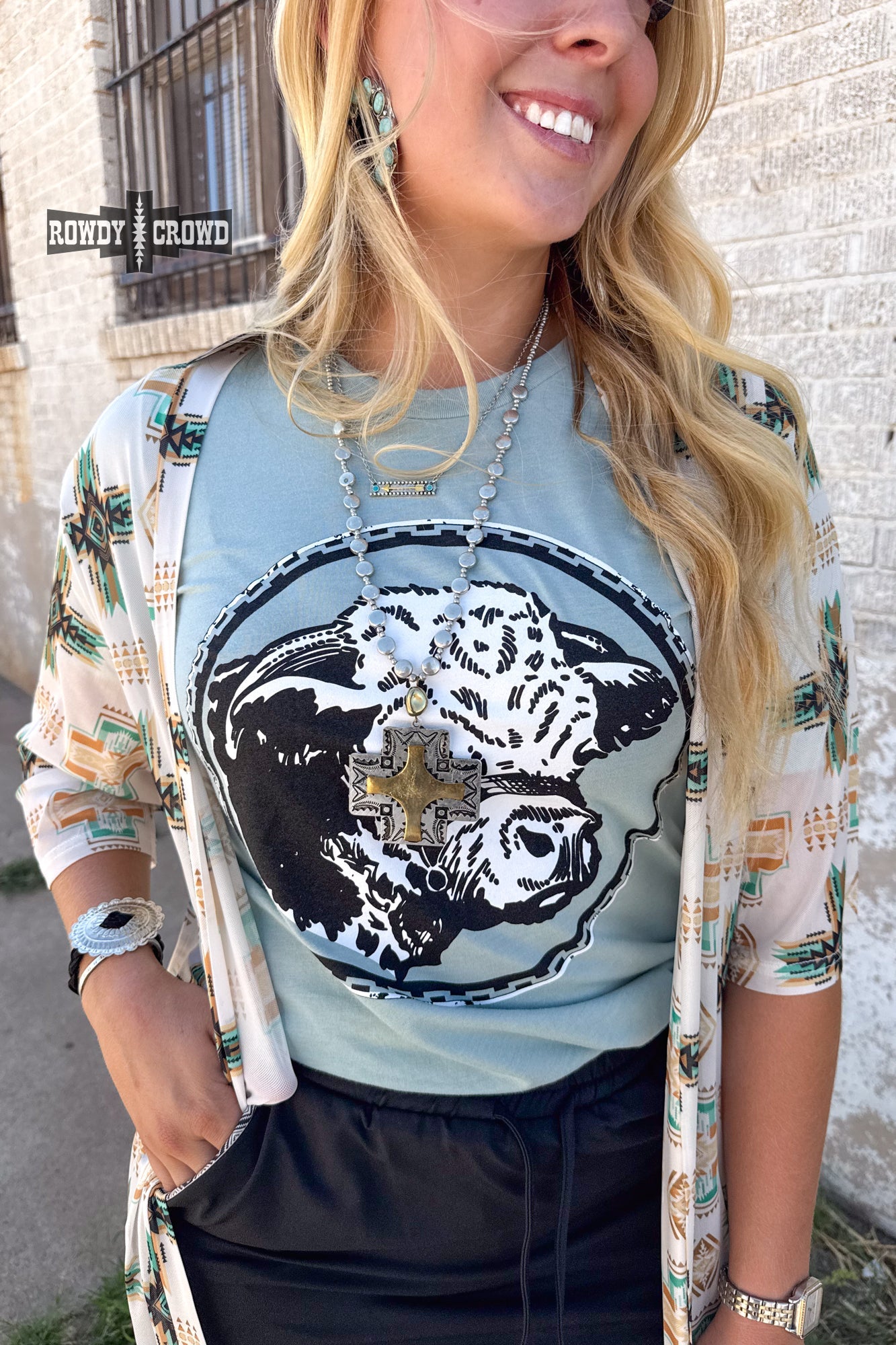 The Waverly Necklace features a silver Southwestern-style cross pendant layered with a smaller gold cross at its center. The contrast of metals adds depth and meaning—bold, spiritual, and beautifully balanced. A timeless piece with Western soul.